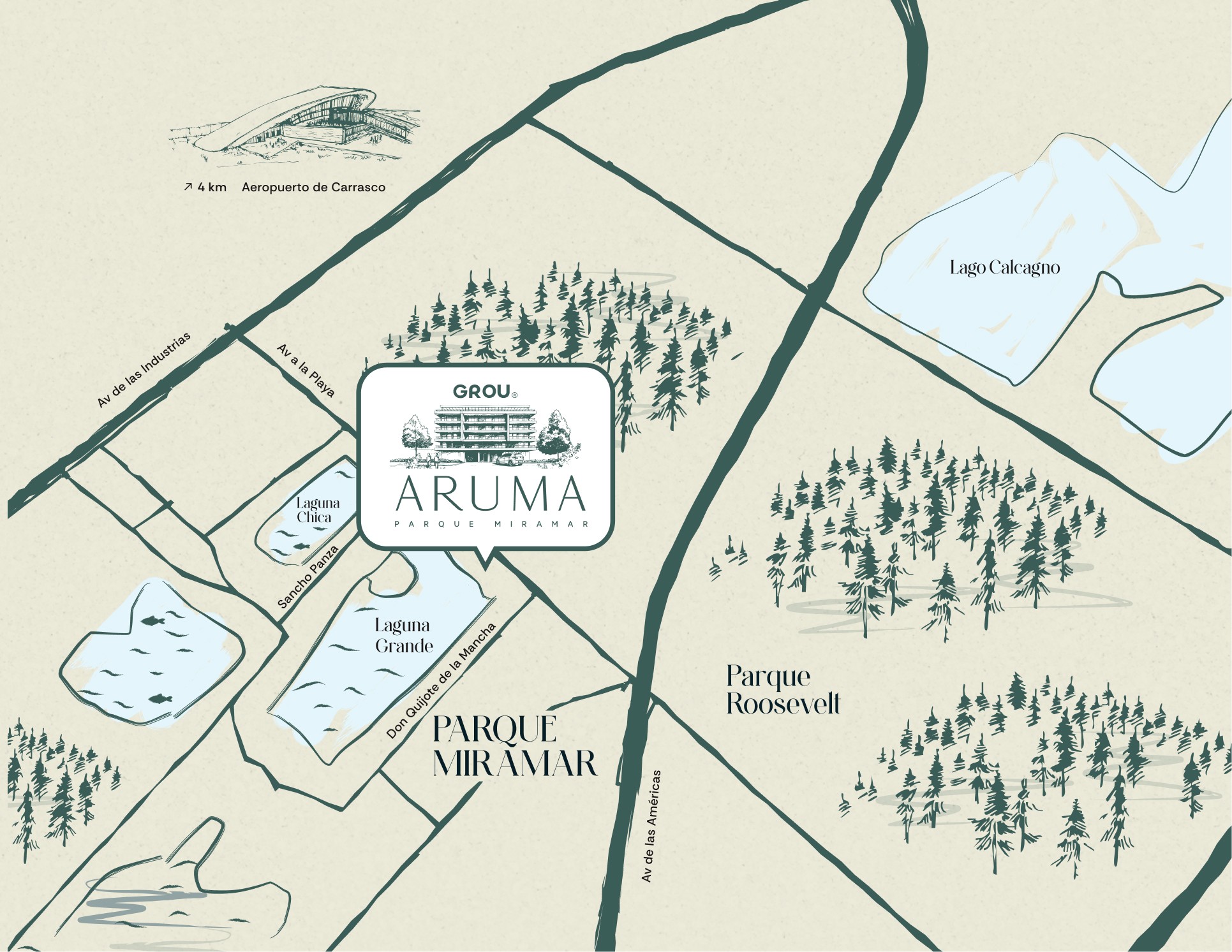 En los Lagos de Carrasco, una de las zonas más exclusivas y conectadas de Carrasco, frente a la Laguna Grande y a pasos del imponente Parque Roosevelt.