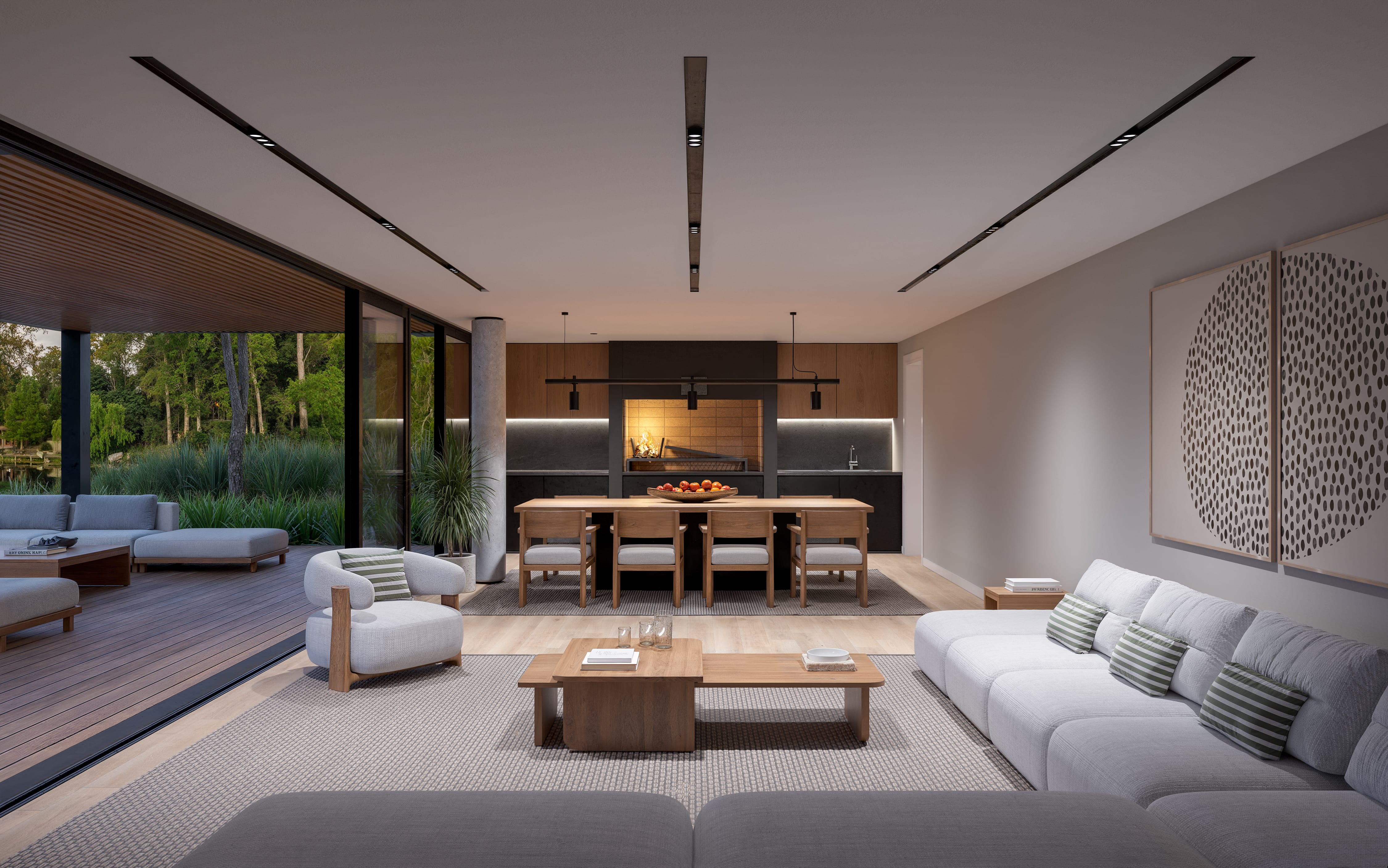 El paisaje se insinúa en cada espacio, mezclándose con el interior, y lo simple —una brisa, una sombra, un reflejo—vuelve a tener el brillo de lo esencial.